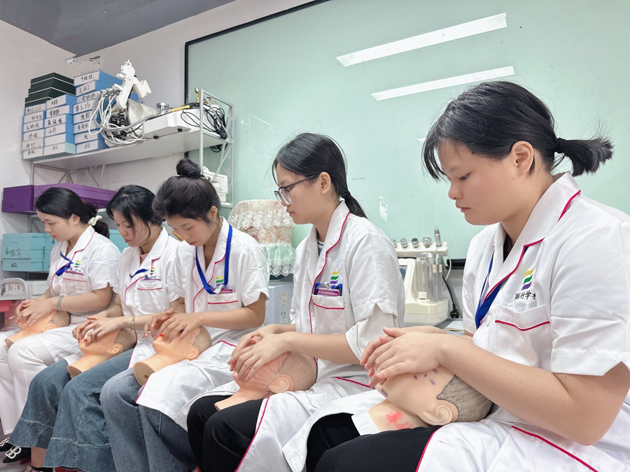 從零開(kāi)始學(xué)美容、南寧美容基礎:很多沒(méi)有系統接觸過(guò)美容專(zhuān)業(yè)培訓的人在學(xué)習之前,有個(gè)疑慮就是人的面部上分類(lèi)了那么多個(gè)重要的xue位,怕自己記不住,也怕學(xué)不會(huì )?如果你現在還有這個(gè)顧慮,恰巧南寧美容專(zhuān)業(yè)正規學(xué)校(麗竹美容專(zhuān)業(yè)正規學(xué)校)剛剛進(jìn)班的同學(xué)正在進(jìn)行美容第 一 課的學(xué)習,一起去看看吧!
