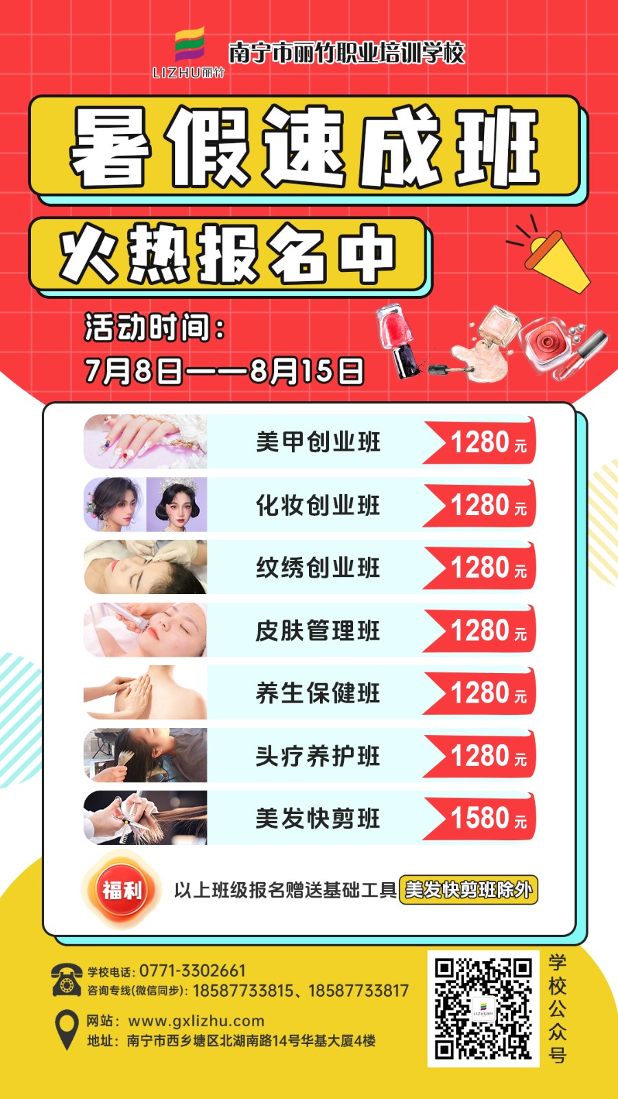 暑期速成班學(xué)費特惠,南寧美容美發(fā)化妝美甲學(xué)校